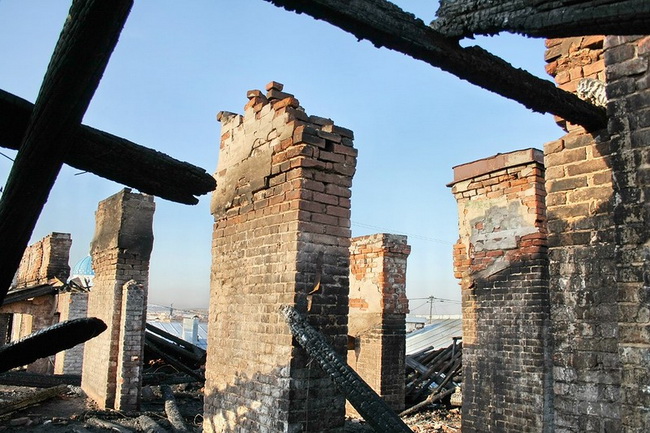 Едва не стоила дому жизни банальная безответственность, о которой я пишу в каждом тексте этой рубрики. Передать-то передали, а ответственного не назначили. Местная жилконтора заложила кирпичом лишь дверь во двор и проездную арку. Дальше она наспех заколотила окна и двери, которые тут же были вскрыты алчущими пристанища бездомными. Разумеется, они пришли сюда сразу после жилищников и впоследствии устроили ещё несколько поджогов (бездомные курят, не зная о том, что «постельный» пожар уничтожает комнату за пять минут, разводят костры в помещениях и пытаются топить старинные печи с забитыми дымоходами).