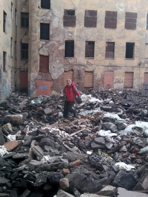 Стоявший рядом представитель полиции серьёзно продвигал в жизнь версию, что расселённые дома самовозгораются. Возможно, от стыда за свою участь. Предполагаю, что это было отравление продуктами горения (ломаной мебели в доме оставалось много), но, скорее, это была демонстрация нежелания работать: на «самовозгорание» списать куда проще, чем искать поджигателя.