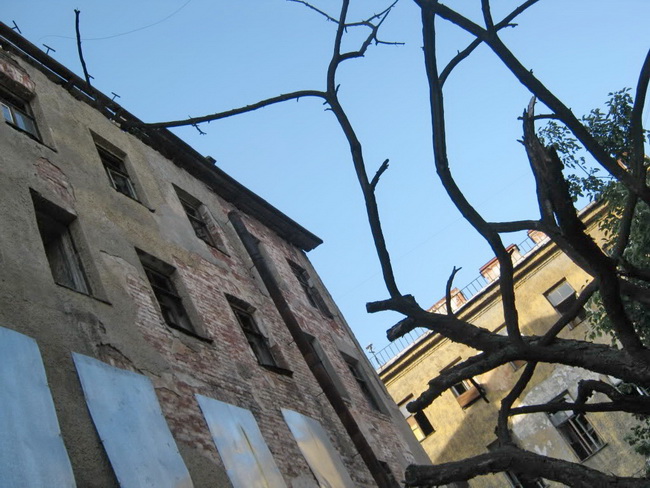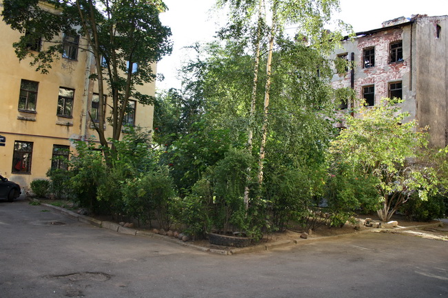 Стопроцентный износ – это «картонный домик», рассыпающийся от лёгкого ветра. Это дом после огненного смерча, бомбёжки или землетрясения. Это Дрезден 1945-го, Спитак 1988-го, Грозный 1995-го и Сирт 2011-го. Это дом за секунды до полного, одномоментного обвала, как на Двинской. Стопроцентный (да и то не сто, а меньше) износ – это когда внутри с пугающим грохотом и клубами пыли постоянно что-то рушится. По теории, такое здание должно быть надёжно огорожено и увешано предупреждающими табличками. Однако ничего этого мы не видим. Ни летящих кирпичей, ни расползающихся трещин, ни новых обвалов, которые просматривались бы в незаколоченных окнах. В уютном дворике (он проходной) отдыхают и сажают цветы взрослые, а прямо под фасадом резвятся дети.