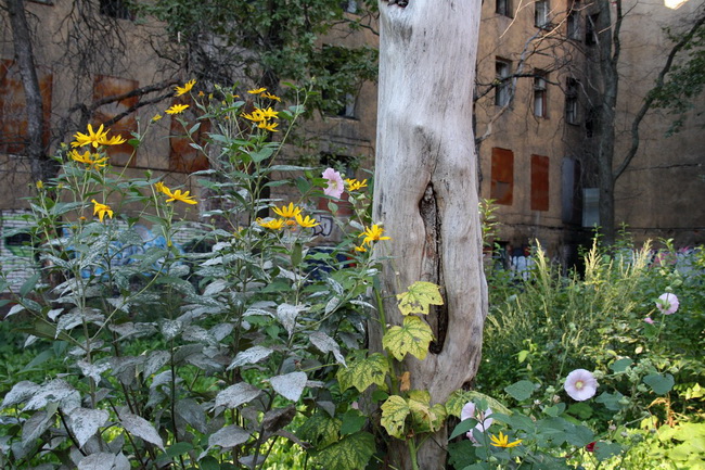 Бомжи пытались зарабатывать. Это почуяли прыткие мелкие коммерсанты, паразитирующие на городской экономике. И закипела криминальная жизнь: прямо в расселённом доме открылся пункт приёма металлолома. Почему эта жизнь криминальная? Во-первых, клиенты таких подпольных точек – часто криминальные личности, создающие в квартале неблагополучную обстановку. А во-вторых, все мы знаем, что в металлолом практически каждый день идёт убранство расселённых исторических домов: металлические печи и лестничные балюстрады. Пока что мне не удалось убедить городской парламент в том, что этот «бизнес» надо не просто урегулировать, а полностью прекращать. С металлоприёмкой я боролась рейдами и письмами в районную администрацию. Помогала мне и жилконтора – ЖЭС № 1 ЖКС № 1 Адмиралтейского района. На Мясную (вход был оттуда, через проходную, ведущую к жилым дворам арку) регулярно приезжала полиция и «зачищала» повадившихся грабить Петербург. В конце концов добро победило. Благодаря ещё и тому, что ЖЭС замуровала облюбованный злоумышленниками закуток.