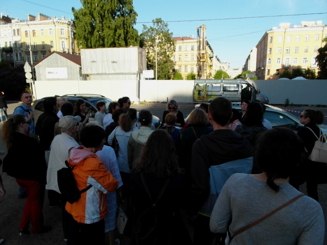 Экскурсия закончилась приглашением присоединяться к сообществу «Центральный район VS уплотнительная застройка!», участвовать в акциях, поддерживать спасение оставшихся зданий Мытного двора и действовать против уплотнительной застройки центра.