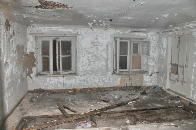 В комнатах и коридорах, до которых эта напасть не дошла, пейзаж, типичный для расселёнки. Грязь, пыль, запустение, горы мусора, хлама, поломанной мебели и вскрытого паркета. Это — следы горе-кладоискателей, шарящих по всем заброшенным домам. Ну что здесь искать, скажите мне, после перепланировки в коммуналки, после стольких ремонтов, да и спустя сто лет после революции? Ну, разве что найдёшь от силы советскую монету. Стоит ли ради неё перерывать в доме всё, тратить время? Какие странные люди…