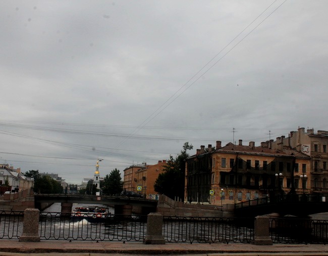 Жизнь здесь бьёт ключом: это городской центр, слияние реки и канала, красивое сплетение двух мостов. Место самое экскурсионное. В паре сотен метров мелькает колокольня Никольского собора. По Фонтанке разворачиваются в канал белые теплоходы. Их целая череда. Рассказы экскурсоводов создают гомон.