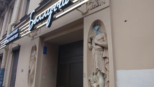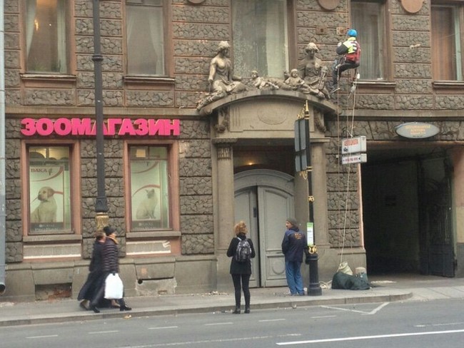 Бывают, конечно, ситуации, когда причиной неудовлетворительного состояния фасадов являются не природные катаклизмы, не отсутствие финансовых средств и даже не вандализм, а стремление решить проблему содержания фасада наиболее простым путем. Вспомним скандальное происшествие, связанное с демонтажом горельефов на здании по адресу Б. Пушкарская улица, 1/8, местной коммунальной службой, которая под предлогом благих побуждений вместе со старой штукатуркой сбила скульптурные изображения в виде женских голов.