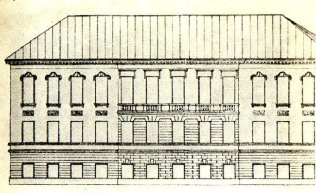 Документы говорят, что в то время на участке со стороны Театральной площади находилось два здания: собственно особняк и служебный корпус, между которыми был проезд во двор, что странно, ибо ни одно из известных мне изображений дома того времени не зафиксировало этого, а городские видописцы были тогда почти фотографически точны, ведь они рассматривали свои рисунки как исторические документы, а не как воплощение свободного художественного вымысла. Зато по Никольской (Глинки) улице очень ясно виден небольшой двухэтажный домик, соединённый с особняком общей оградой, вероятно он и был служебной постройкой или одной из таковых.