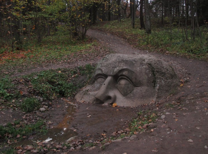 Паломничества к одной из популярных парковых достопримечательностей не прекращаются круглый год. Исполинская скульптура «Голова», федеральный памятник работы неизвестного автора кон. XVIII — нач. XIX веков, расположен в овраге, в начале родника, и над землей видна только его верхняя часть.