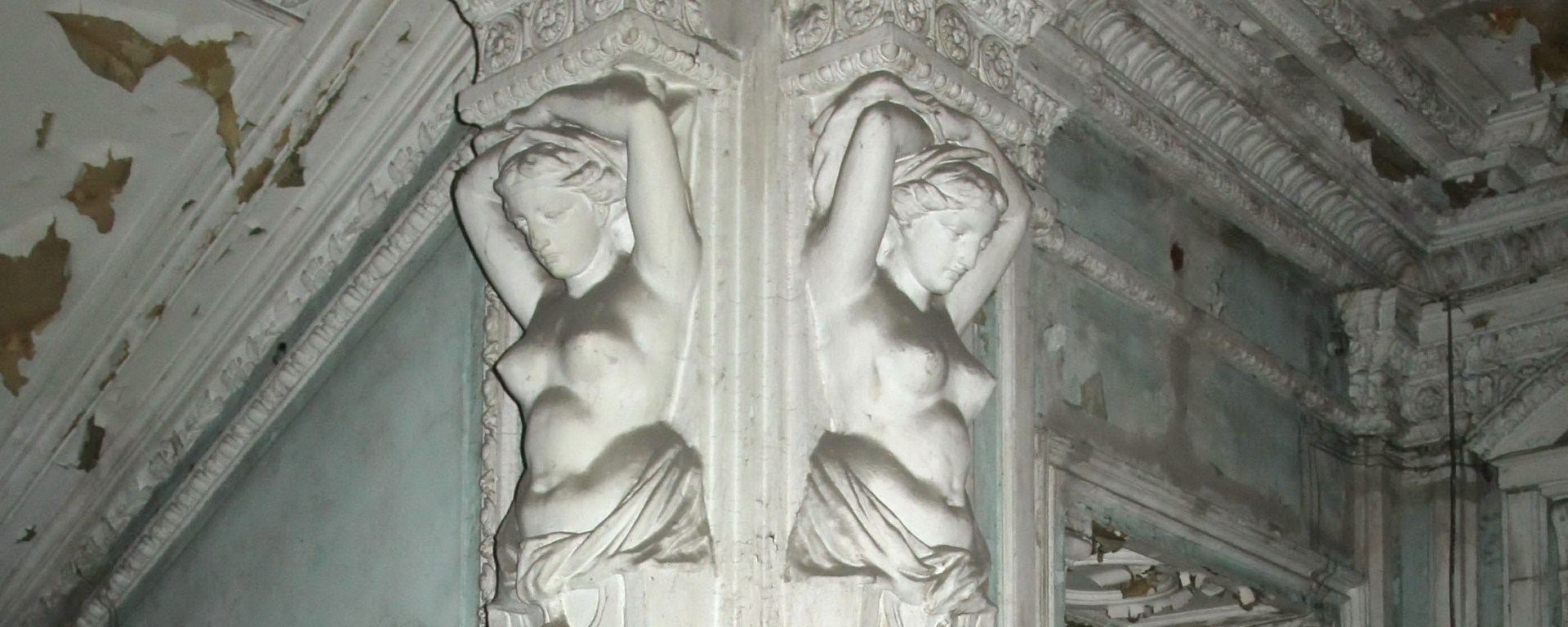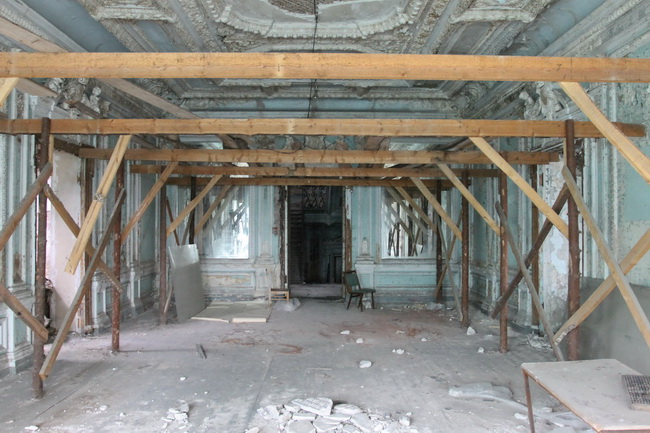 Здесь уже рушатся полы, а вместе с ними и лепные потолки. Очень скоро сюда будет не пройти.