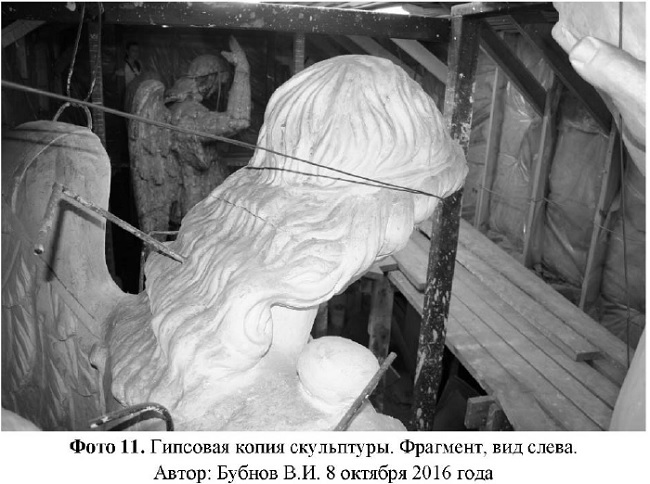 Была изготовлена гипсовая копия фигуры и составлена методика воссоздания скульптуры — из тех же материалов, что и оригинал. Впрочем, к тому времени, как дело дошло до историко-культурной экспертизы проекта (октябрь 2016), реставрация требовалась уже не только самому ангелу, но и его гипсовой копии — соответствующий раздел присутствует в экспертизе.