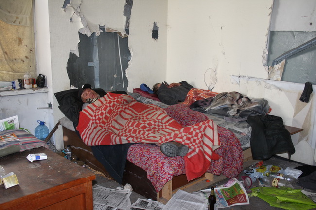 А под ногами уже лужи, критическая сырость внутри. Долго ли простоит всё это, когда у здания совсем нет кровли? Причём здесь она уничтожена не пламенем, а унесена покинувшими стены хозяевами.