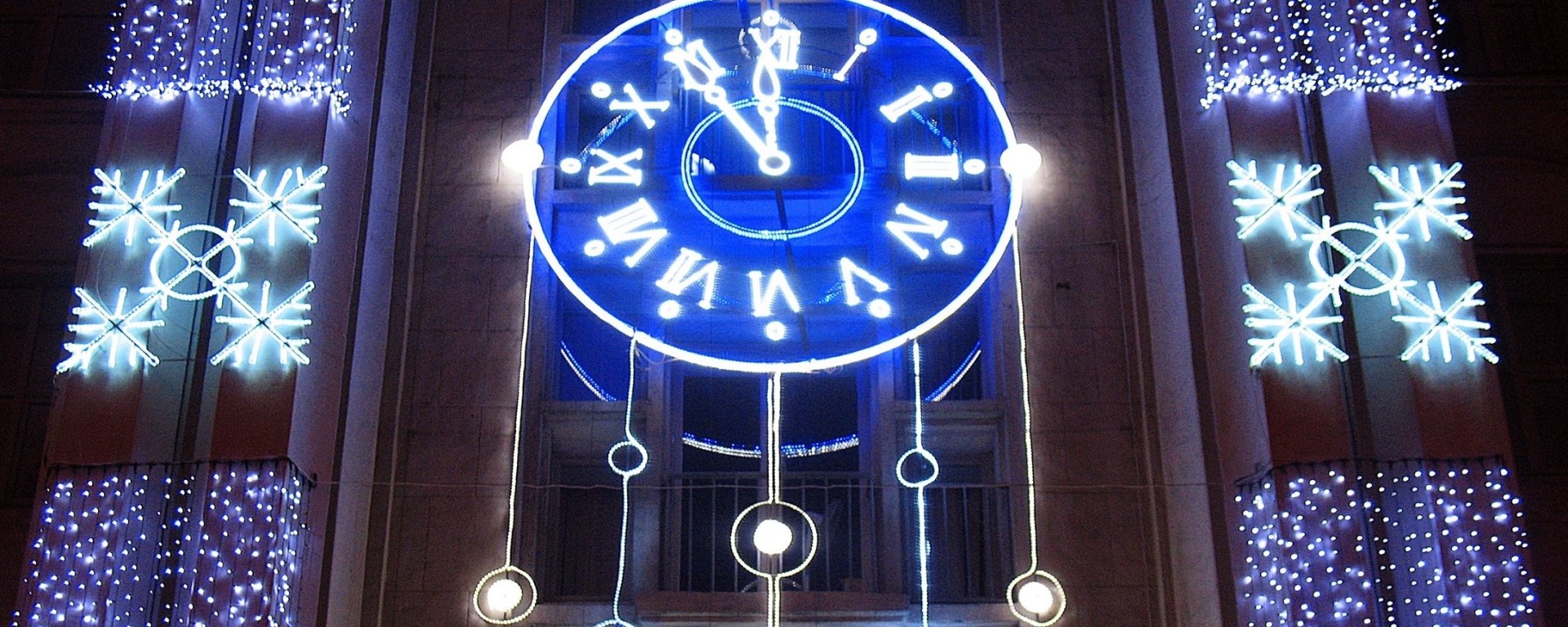 Еще одни часы, по которым точно не получится отследить наступление Нового года — солнечные часы, например, на верстовом столбе на углу Московского проспекта и набережной Фонтанки, в саду Маршала Говорова. Кажется, на них в декабре тоже всегда полночь…
