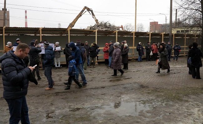 27 января защитники Фарфоровского кладбища собрались у строительного забора, за которым проходит снос кинотеатра «Спутник», чтобы почтить память жителей и защитников блокадного Ленинграда, захороненных здесь во время Великой Отечественной войны.