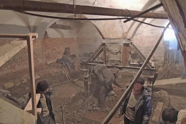 Способ решения задачи углубления подвалов Александровского дворца просто шокирует. Для углубления подвала и увеличения полезной площади требуется демонтаж валунного фундамента всех опорных столбов, каждый из которых является опорой четырех кирпичных сводов.