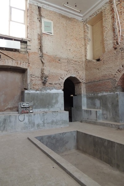 Помещение цокольного этажа в восточном ризалите. Сводчатое перекрытие помещения цокольного этажа уничтожено: на кирпичной кладке стен видны следы срубленных коренных кирпичных сводов. Выполнено заглубление подвала.