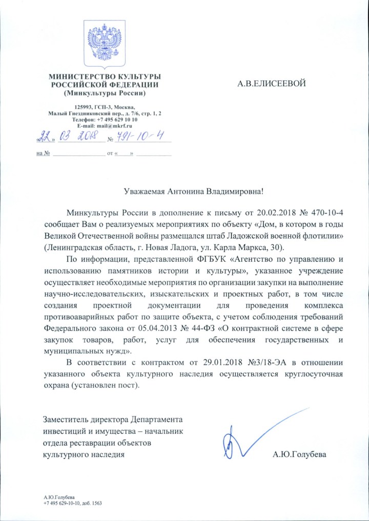 Движение «Живой город» обратилось к генеральному директору АО «Строительный трест» Евгению Резвову с просьбой спасти объект культурного наследия федерального значения — «Дом, в котором в годы Великой Отечественной войны размещался штаб Ладожской военной флотилии» — в Новой Ладоге.