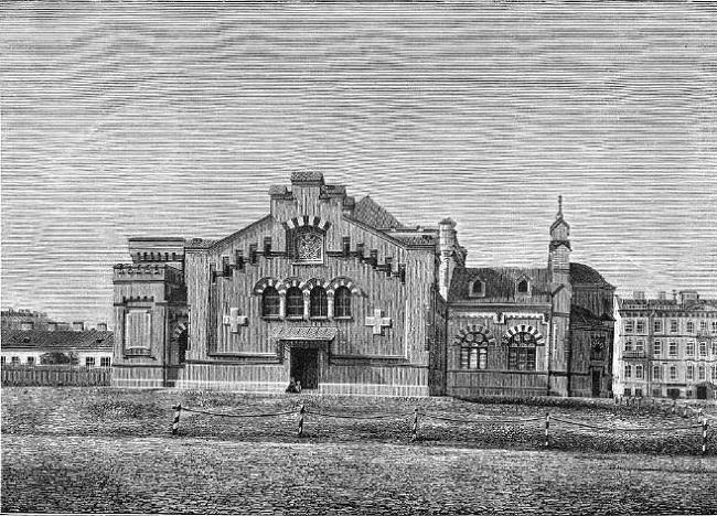 Итак, жил да был артиллерийский госпиталь, но не было в том госпитале своей церкви. И вот в 1728 году для устройства оной был выделен один из покоев самого госпиталя, а позже, в 1759 или 1760 году, на внутреннем дворе госпиталя появилось новое, но всё ещё деревянное здание госпитальной церкви. Изображений того храма я не смог найти, как знать, возможно, они и не дошли до наших дней. Освящена она была во имя двух святых врачевателей, бессребреников Косьмы и Дамиана. Христианская церковь знает три пары святых с этими именами, все они были лекарями, и это, конечно же, одна и та же пара людей, просто утроившаяся, как это нередко случалось в истории церкви.