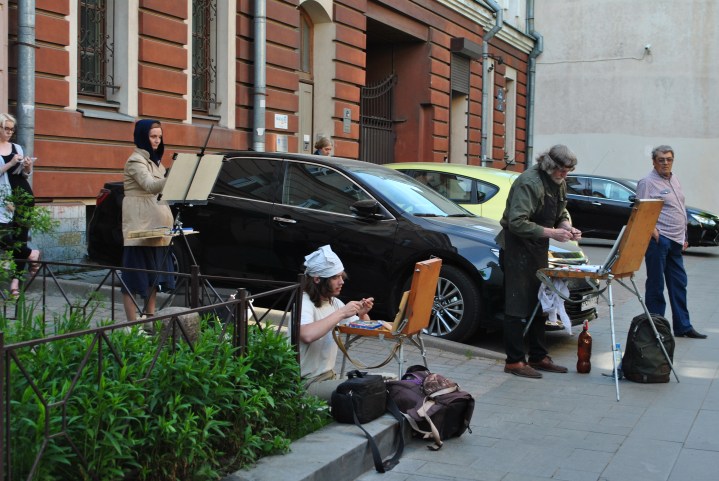 Художники расположились на улице Репина напротив флигеля и во дворе соседнего дома. Пленэр продолжался более двух часов.
