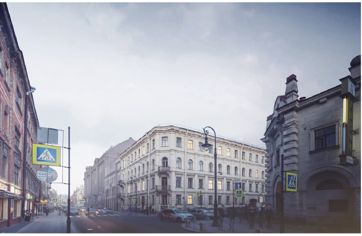 Зеркально перевёрнутый исторический фасад предложил Евгений Герасимов для нового здания музея Достоевского
