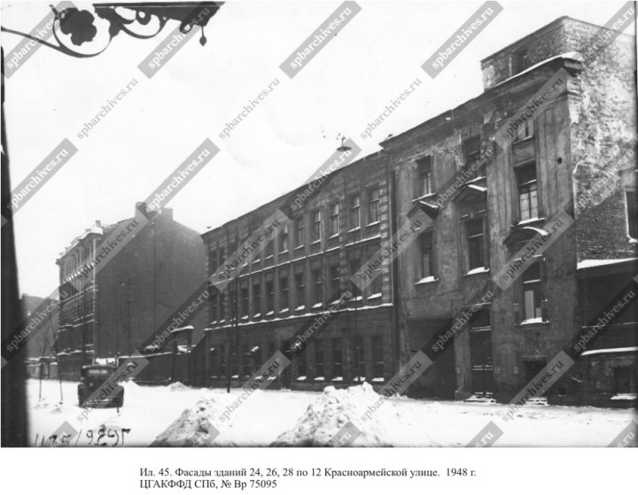 Второй вопрос, рассмотренный на рабочей группе — воссоздание двух исторических домов, незаконно снесенных семь лет назад на 12-й Красноармейской. «Спецреставрация» Игоря Пасечника, которая выполнила проект воссоздания уничтоженных корпусов, представила архивные материалы: оказалось,что собственно историческим был только дом № 26, соседний сильно перестроен в 1950-х годах.