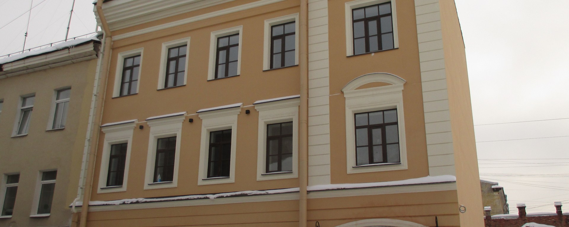 Тогда работы находились в активной фазе, до этого здание длительный период стояло заброшенным. Реновацию аварийных конструкций и спасение дома взяла на себя компания «Балтэлектромонтаж-300», приобретя его на торгах в 2015 году. Прежний обладатель, ООО «Финансово-правовая консалтинговая группа», за 5 лет так и не приступила к ремонту, и через суд здание вернулось в собственность города. Фонд имущества предлагал осуществить либо капитальный ремонт, либо «разборку объекта». Вместе со зданием в собственность перешёл сформированный по фундаменту участок. Согласно договору с КИО, ремонтно-восстановительные работы должны были закончиться к концу 2018 года.