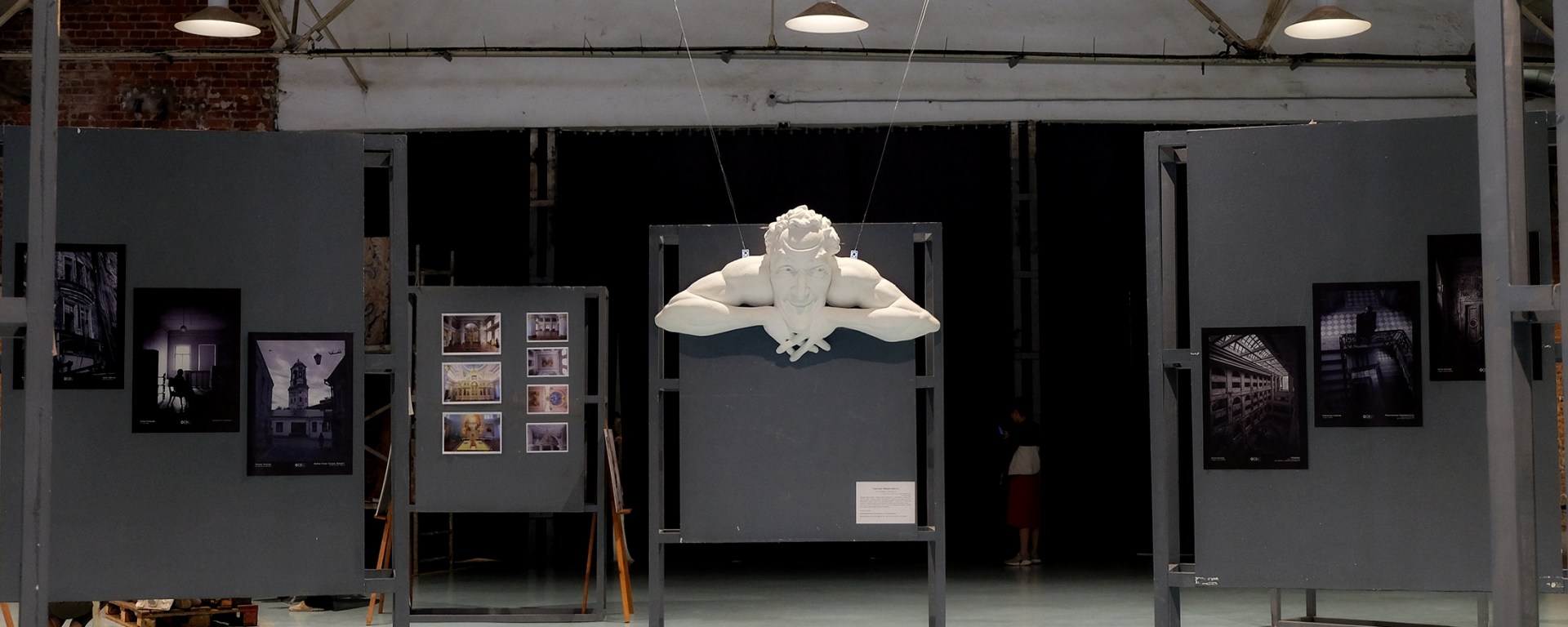 Нельзя не отметить центр притяжения выставочной зоны – копию горельефа Мефистофеля, сбитого в 2015 году с фасада доходного дома архитектора А.Л. Лишневского на Лахтинской улице, 24 и так и не восстановленного на своем законном месте. Реплика на Мефистофеля изготовлена по имеющимся фотографиям подлинного горельефа с помощью технологий 3D -моделирования и 3D-печати.
