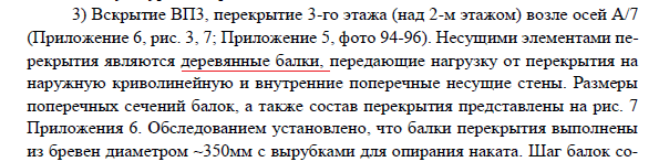 Выкопировка результатов зондажа перекрытий флигеля из Заключения ООО «БЭСКИТ»