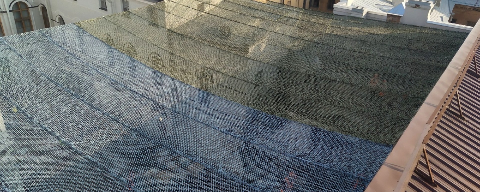 Демонтажные работы на западном флигеле Шуваловского дворца (наб. р. Фонтанки, 21) продолжились сразу после выборов. Теперь владельцы музея (Фонд Вексельберга) пытаются прикрыть варварский демонтаж защитной сеткой, за которой наследие уничтожают без лишних свидетелей.