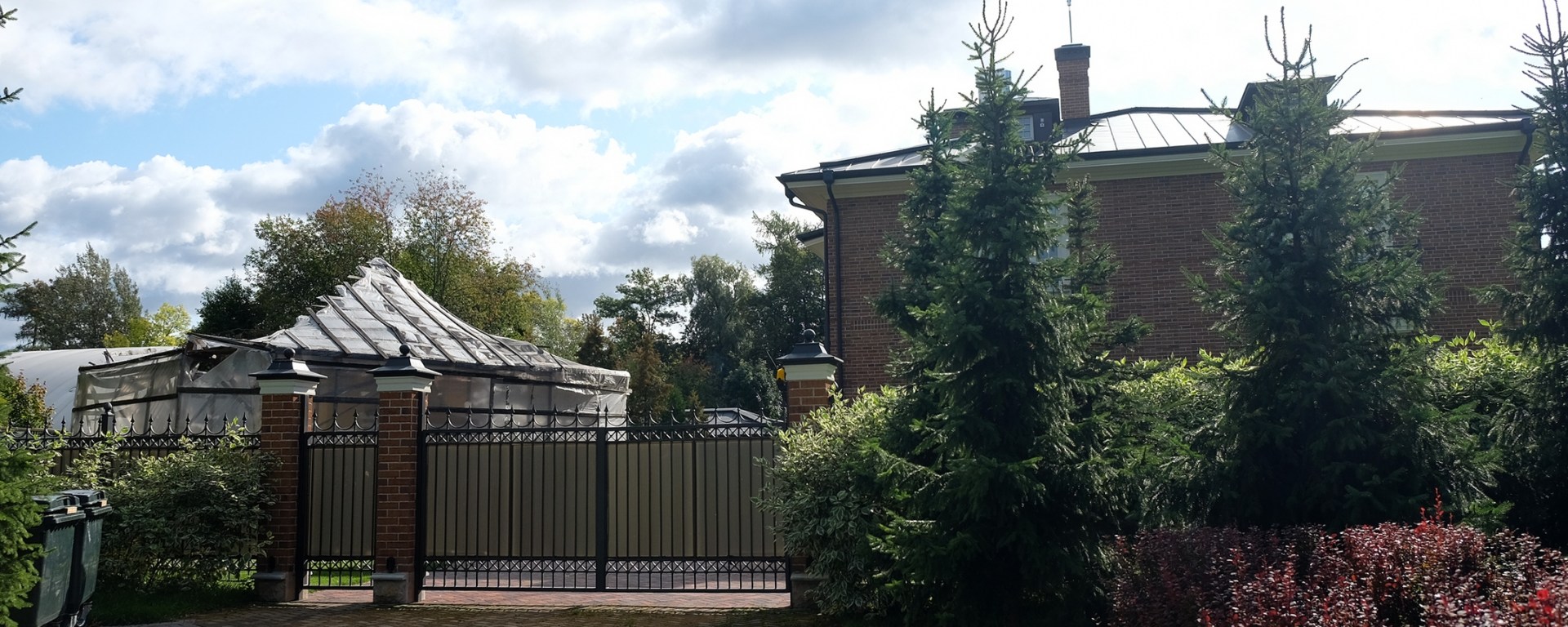 Предусматривается перенос беседки с помощью подъемного крана с последующей установкой на новый фундамент и воссозданный стилобат. Сейчас беседка находится на частной территории. На время работ она скрыта специальной пленкой.