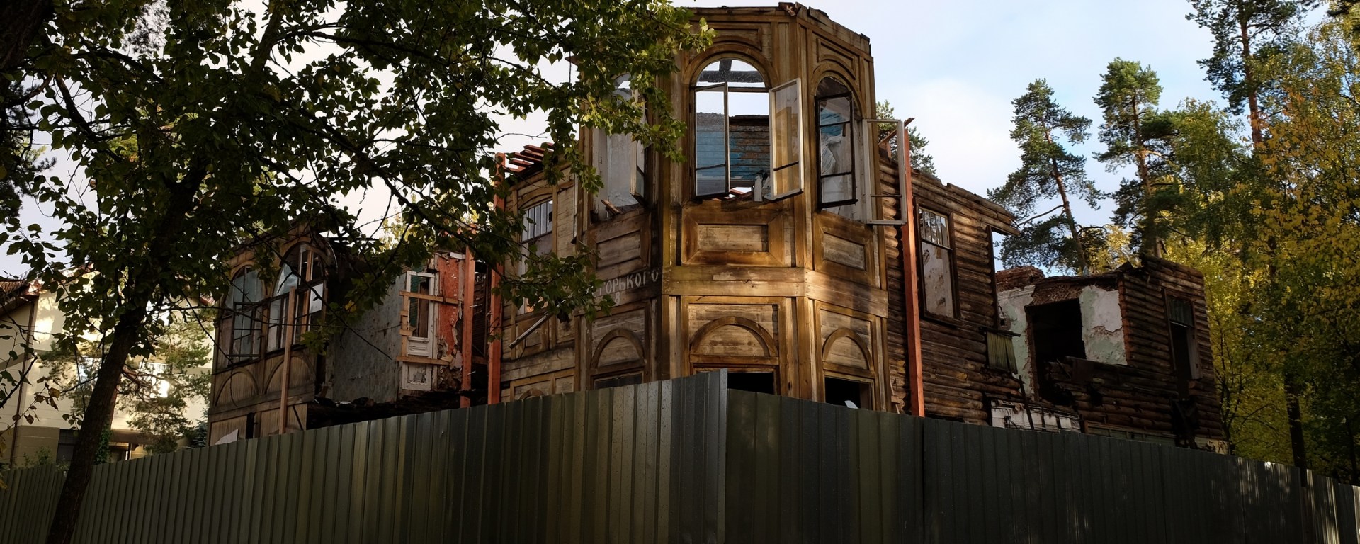 Этой осенью начались первоочередные противоаварийные работы на даче Н. М. Кочкина в Курорте (ул. Максима Горького, 8). В данный момент рабочие разбирают конструкции, грозящие очередным обрушением. Помещения освобождают от мусора и завалов.