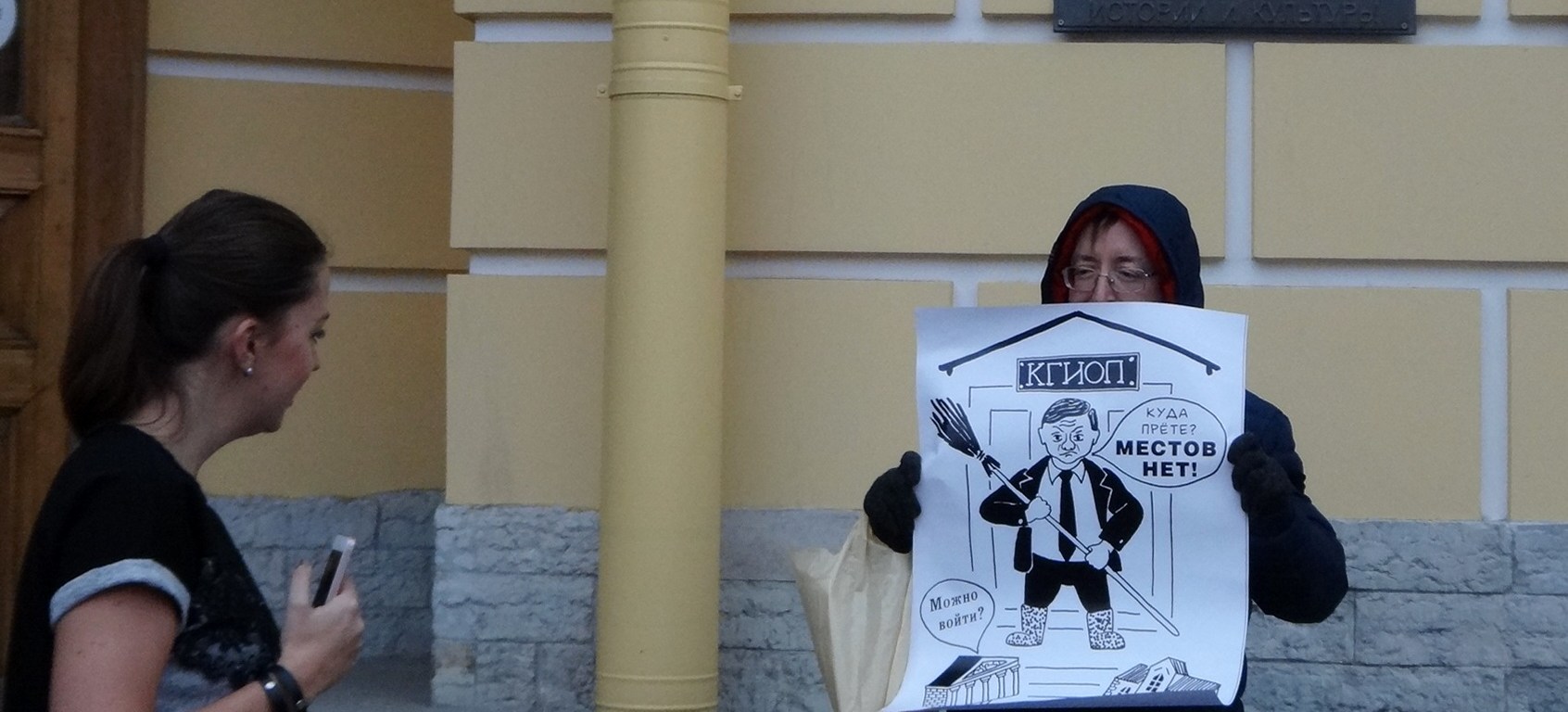 Днем 26 декабря у здания КГИОП состоялся одиночный пикет против отклонения Комитетом большинства заявлений на включение ценных зданий в перечень выявленных объектов культурного наследия. В числе отклоненных – заявления, подготовленные аттестованными экспертами.