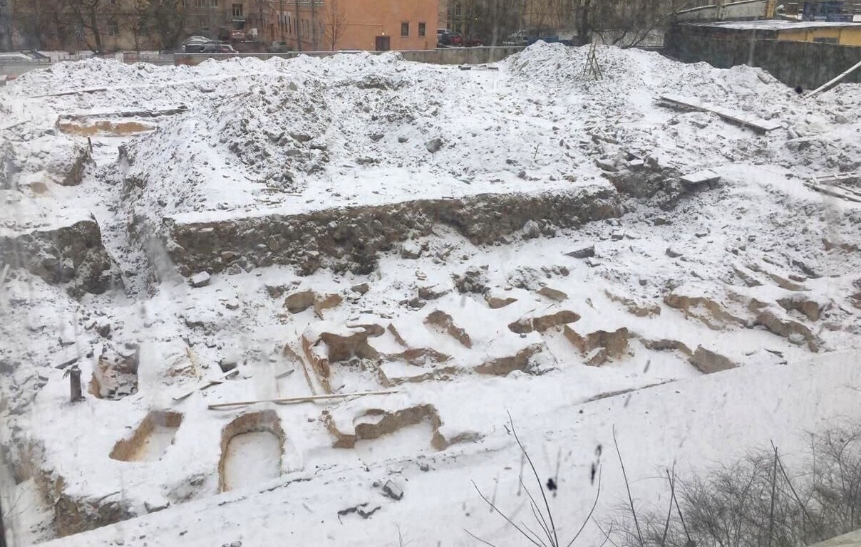 По данным историко-культурной экспертизы, в результате предварительных археологических работ на площади более 1000 кв.м. специалисты выявили культурный слой XVIII-XIX вв. В границах раскопа было обнаружено 595 исторических погребений, в том числе 24 скопления костей от полностью разрушенных погребений. Обнаруженные находки вывезены с участка для перезахоронения. Как сообщает интернет-газета «Фонтанка», начальником археологической экспедиции Романом Филиппенко озвучено число в 2500 находок. По итогам работ археологи извлекли культурный слой, на месте которого образовался котлован для последующего строительства.