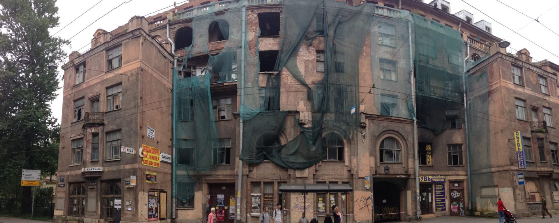 История дома Басевича на Большой Пушкарской, 7 известна многим. Здание в стиле модерн, считавшееся украшением улицы, расселено с 2009 г. в связи с аварийным состоянием. На протяжении 11 лет оно сначала находилось в ожидании очереди на ремонт в рамках программы «Молодёжи — доступное жильё», затем — проекта реконструкции для «Академии танца Бориса Эйфмана», по которому большую часть дома планируется снести.
