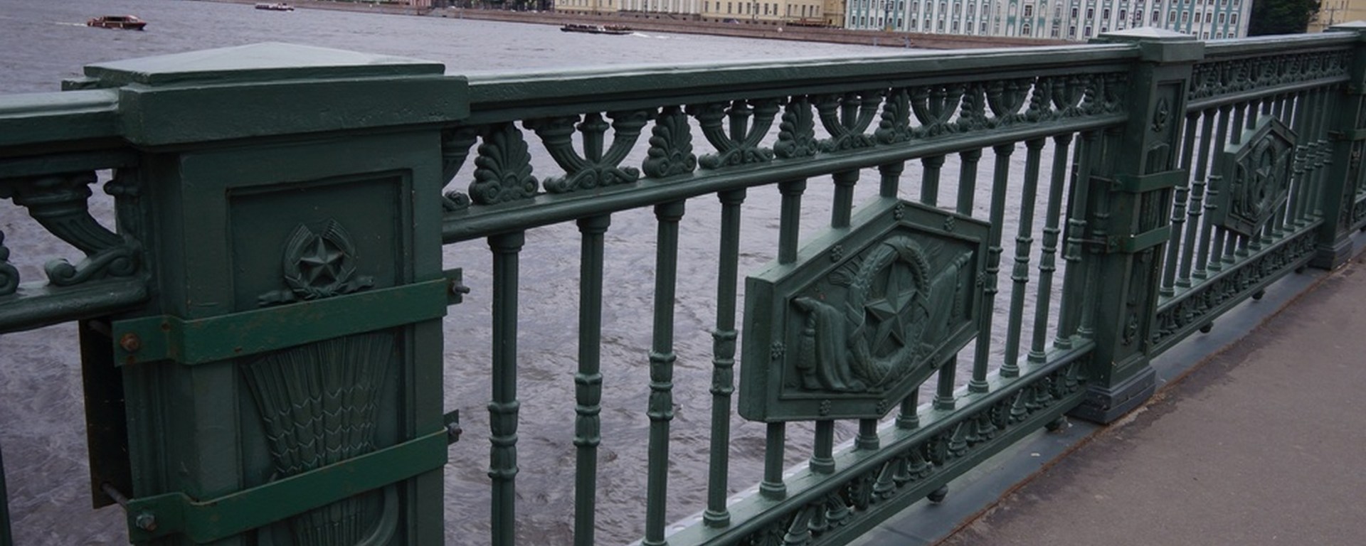 В 2016 году Дворцовый мост в Санкт-Петербурге отметил свой столетний юбилей. Именно его разведенный центральный пролет является визитной карточкой нашего города. Литая чугунная решетка перил появилась в 1939 году по проекту скульптора И.В. Крестовского по рисунку архитектора А.А. Носкова. До этого перильные ограждения были деревянными.
