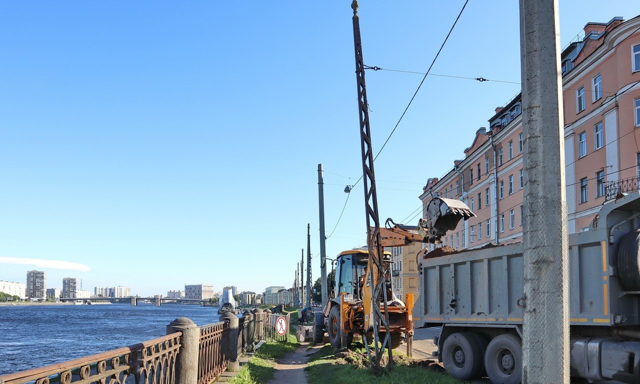 Петербуржцы обеспокоены возможной заменой опор контактной трамвайной сети на проспекте Обуховской Обороны. Сейчас ведется подготовка к установке новых опор вместо старых, рабочие заливают фундаменты для их установки.