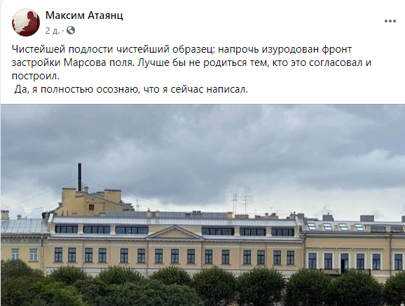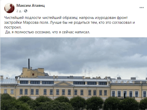 Максим Атаянц: «Чистейшей подлости чистейший образец: напрочь изуродован фронт застройки Марсова поля»