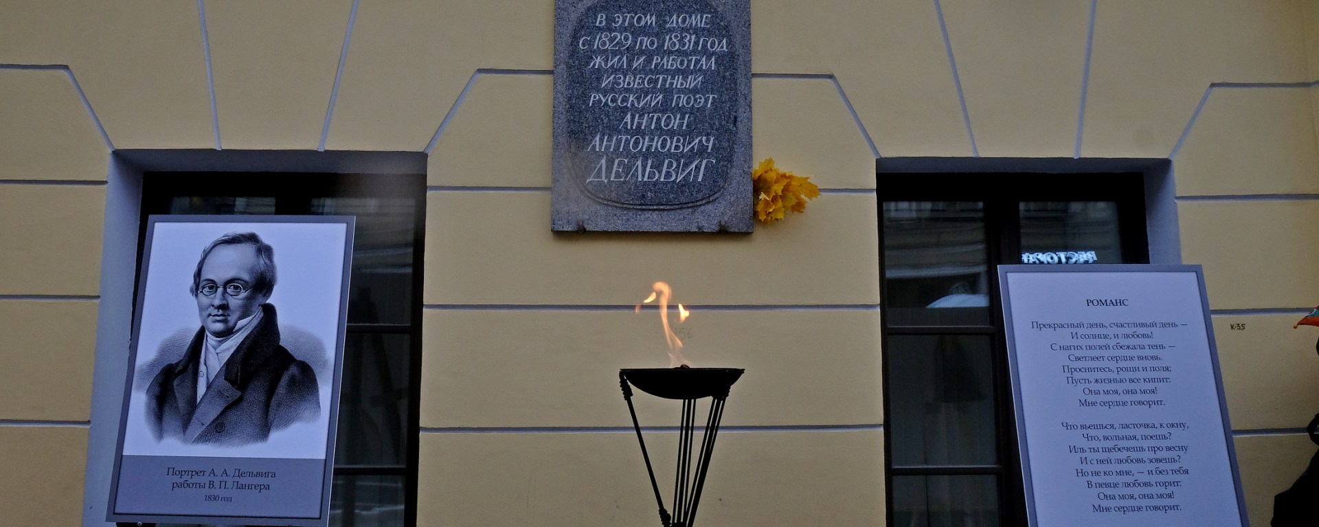 В воскресенье, 18 октября, артисты Интерьерного театра дали поэтическое представление у стен дома Антона Дельвига на углу Загородного проспекта и Щербакова переулка. В этом дом поэт жил с 1829 года до последних дней своей жизни.