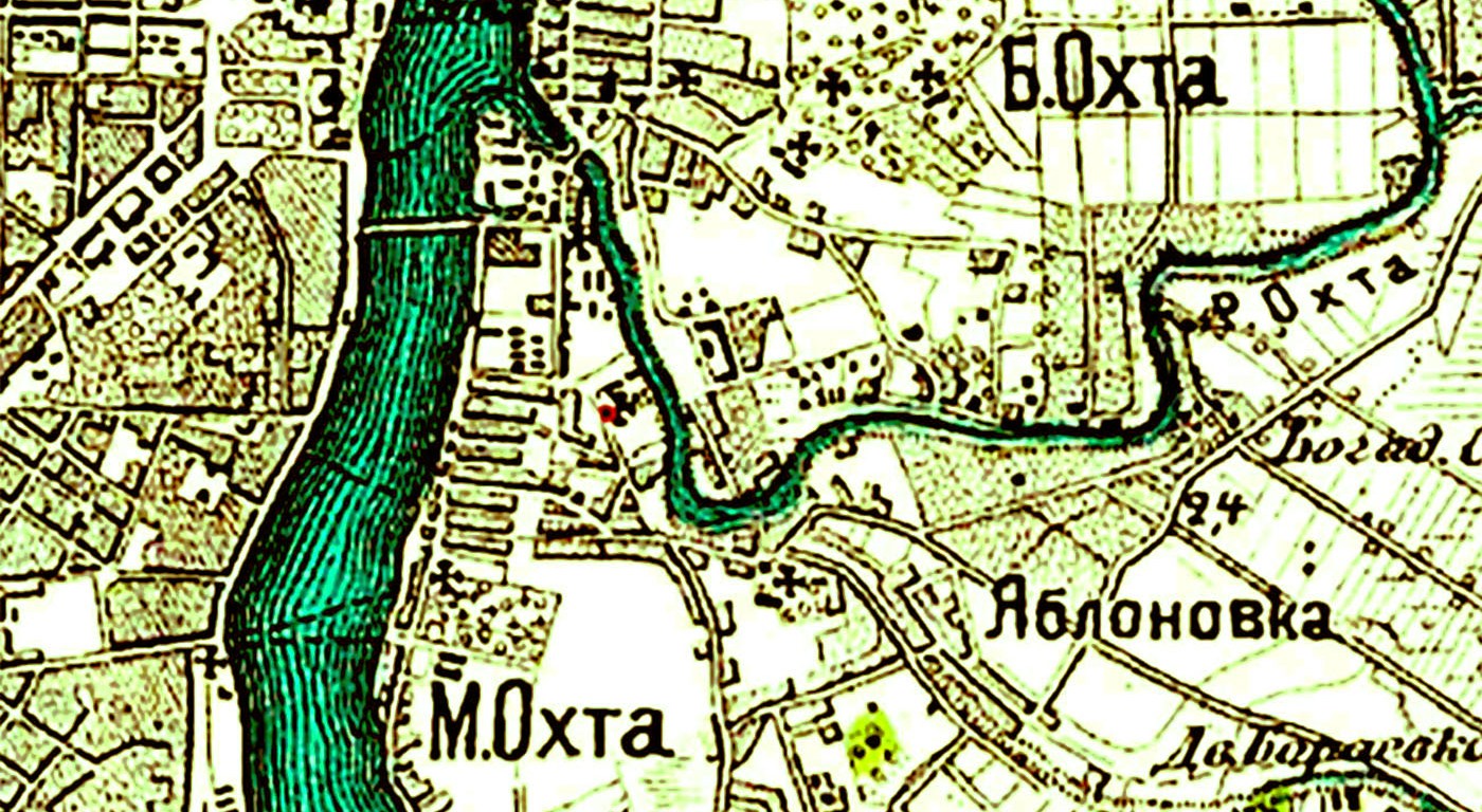 Исследуемый участок находится на исторической территории Малоохтинского старообрядческого кладбища. В XVIII и начале XIX веке здесь находились охтинские поселения. С 1828 года они включены в состав Санкт-Петербурга. В середине XVIII века члены поморского согласия Охтинской верхней слободы основали кладбище на берегу реки Охты. Оно стало первым старообрядческим кладбищем Петербурга. В 1792 году в северо-западном углу кладбища построена каменная моленная с куполом и колокольней. Строение имело крестообразную форму. В начале XIX века на территории кладбища появились богадельня, больница и столовая. До 1883 года старообрядцам было запрещено строить церкви.Запрещающего указа на устройство кладбищ не было, поэтому кладбища становились конфессиональным, духовным, центром для старообрядческих общин. На их территории без предварительного разрешения властей строились молитвенные дома. В любой момент они могли закрыться. В 1850 году моленные были запечатаны, а через два года старообрядцам было запрещено хоронить на кладбище. Жители богадельни переехали в благотворительные заведения Волковского кладбища, ставшего единственным действующим старообрядческим кладбищем Петербурга.
