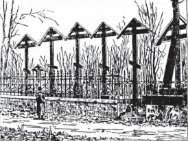 Вид на ограду поморского кладбища на М. Охте.илл.из журнала «Петербургский листок» № 305, 1897 г.