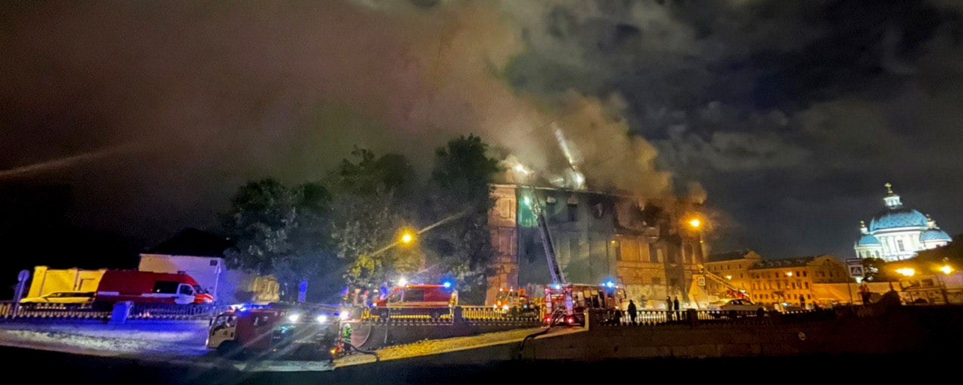 В заброшенном доме Дворжака на углу набережных реки Фонтанки и Крюкова канала в ночь на 10 августа произошел крупный пожар. На протяжении долгих лет «за зеленым саваном» это первое крупное возгорание. По официальным сообщениям, огонь охватил 210 кв. м. здания, горели мусор и строительные материалы. Пожар тушили до самого утра.